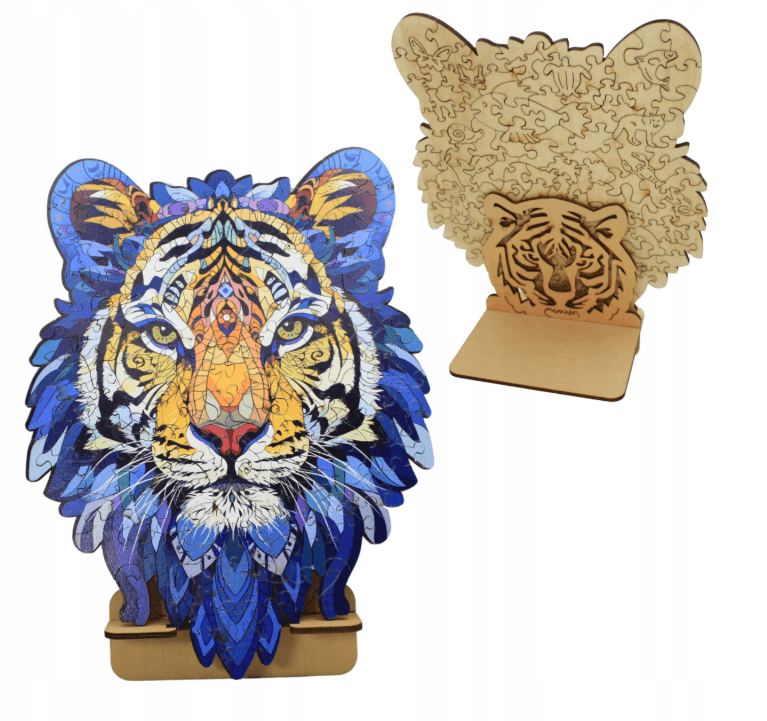 Wyjątkowe drewniane puzzle w kształcie pięknego tygrysa. Szukasz niebanalnego prezentu lub kreatywnego sposobu na relaks? Ten zestaw drewnianych puzzli w kształcie tygrysa to połączenie piękna, jakości i funkcjonalności! Po złożeniu możesz skleić układankę i wyeksponować ją na dołączonym drewnianym stojaku – to coś więcej niż puzzle, to dekoracja, która przyciąga wzrok. Ułożenie tych puzzli wcale nie jest takie proste, ale naprawdę wciąga! Każdy z elementów tej układanki wykonany jest starannie z drewna i posiada oryginalny kształt, przypominający zwierzęta, rośliny czy inne obiekty. Korzyści z układania drewnianych puzzli: redukuje stres pomaga się zrelaksować ćwiczy pamięć, ćwiczy koncentrację, ćwiczy logiczne myślenie ekologiczny produkt wykonany z drewnianej sklejki fantastyczny i oryginalny PREZENT na dzień ojca, dzień matki, na urodziny, święta czy każdą inną okazję !!! ✅Co wyróżnia ten zestaw? Unikalny kształt puzzli – każdy element to małe arcydzieło! Znajdziesz tu m.in. figurki zwierząt (niedźwiedź, lis, wilk i wiele innych). Wysoka jakość wykonania – puzzle dokładnie wycięte laserowo, trwałe i odporne na uszkodzenia. Ozdobne pudełko prezentowe – idealne na prezent! Bawełniany woreczek – do bezpiecznego przechowywania elementów. Klej w buteleczce z aplikatorem – pozwala skleić puzzle po złożeniu, by stworzyć trwałą ozdobę. Drewniany stojak z motywem sowy – piękna ekspozycja gotowego dzieła. Nasze puzzle to doskonała forma rozrywki zarówno dla dzieci jak i dorosłych. CECHY PRODUKTU: Wyjątkowy kształt: Każdy z elementów przedstawia różne zwierzęta, rośliny lub inne figury, co czyni układanie jeszcze bardziej ekscytującym. Piękne kolory: Elementy są malowane żywymi, przyciągającymi wzrok kolorami. 150 elementów. Rozmiar A4: Wymiary po złożeniu 30cm x 21cm Wymiar opakowania: 16 x 14 x 6,5cm Idealne na prezent: Świetny pomysł na oryginalny prezent dla miłośników puzzli, zwierząt i niebanalnych dekoracji
