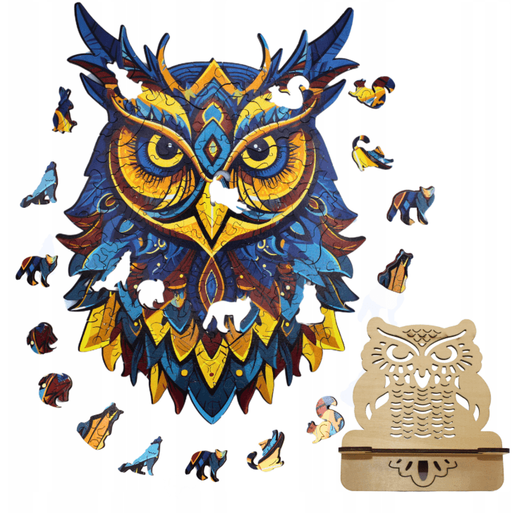Wyjątkowe drewniane puzzle w kształcie pięknej majestatycznej sowy. Szukasz niebanalnego prezentu lub kreatywnego sposobu na relaks? Ten zestaw drewnianych puzzli w kształcie sowy to połączenie piękna, jakości i funkcjonalności! Po złożeniu możesz skleić układankę i wyeksponować ją na dołączonym drewnianym stojaku z grawerem sowy – to coś więcej niż puzzle, to dekoracja, która przyciąga wzrok. Ułożenie tych puzzli wcale nie jest takie proste, ale naprawdę wciąga! Każdy z elementów tej układanki wykonany jest starannie z drewna i posiada oryginalny kształt, przypominając zwierzęta, rośliny czy inne obiekty. Korzyści z układania drewnianych puzzli: redukuje stres pomaga się zrelaksować ćwiczy pamięć, ćwiczy koncentrację, ćwiczy logiczne myślenie ekologiczny produkt wykonany z drewnianej sklejki fantastyczny i oryginalny PREZENT na dzień dziecka, dzień matki, na urodziny, święta czy każdą inną okazję !!! ✅Co wyróżnia ten zestaw? Unikalny kształt puzzli – każdy element to małe arcydzieło! Znajdziesz tu m.in. figurki zwierząt (niedźwiedź, lis, wilk i wiele innych). Wysoka jakość wykonania – puzzle dokładnie wycięte laserowo, trwałe i odporne na uszkodzenia. Ozdobne pudełko prezentowe – idealne na prezent! Bawełniany woreczek – do bezpiecznego przechowywania elementów. Klej w buteleczce z aplikatorem – pozwala skleić puzzle po złożeniu, by stworzyć trwałą ozdobę. Drewniany stojak z motywem sowy – piękna ekspozycja gotowego dzieła. Nasze puzzle to doskonała forma rozrywki zarówno dla dzieci jak i dorosłych. ✅ CECHY PRODUKTU: Wyjątkowy kształt: Każdy z elementów przedstawia różne zwierzęta, rośliny lub inne figury, co czyni układanie jeszcze bardziej ekscytującym. Piękne kolory: Elementy są malowane żywymi, przyciągającymi wzrok kolorami. 150 elementów Rozmiar A4: Wymiary po złożeniu 30cm x 21cm Wymiar opakowania: 16 x 14 x 6,5cm Idealne na prezent: Świetny pomysł na oryginalny prezent dla miłośników puzzli, zwierząt i niebanalnych dekoracji ✅ Dlaczego warto? Układanie tych puzzli to nie tylko relaksująca rozrywka, ale również świetny trening dla umysłu. Każdy element ma unikalny kształt, co dodaje wyzwania i sprawia, że efekt końcowy jest jeszcze bardziej satysfakcjonujący. Po złożeniu układankę można skleić oprawić w ramkę i zawiesić na ścianie jako nietypową dekorację lub postawić na dołączonym do zestawu stojaku. Nie czekaj, zamów już dziś i odkryj magię drewnianych puzzli z niepowtarzalnym wzorem wilka! ✅ Zestaw zawiera: Puzzle drewniane – motyw sowy Drewniany stojak Klej w aplikatorze Bawełniany woreczek do przechowywania elementów Instrukcję montażu i klejenia Ozdobne pudełko prezentowe