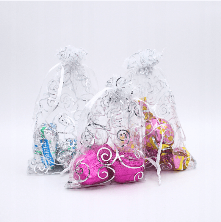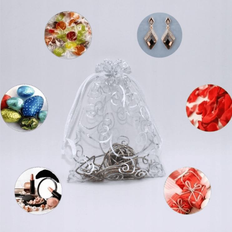 wymiary: 9 cm x 12 cm, 10 cm x 15 cm ✅Piękne i praktyczne woreczki wykonane z delikatnej, transparentnej organzy ✅Delikatna tkanina i subtelny połysk sprawia, że doskonale nadają się jako stylowe opakowanie na prezenty, biżuterię, słodycze czy drobne upominki okolicznościowe ✅Każdy woreczek jest wyposażony w srebrny sznureczek umożliwiający łatwe zamykanie i prezentowanie zawartości. Kolor: srebrne fale Materiał: organza – lekka i przejrzysta tkanina z eleganckim połyskiem Łatwe zamykanie dzięki sznureczkowi