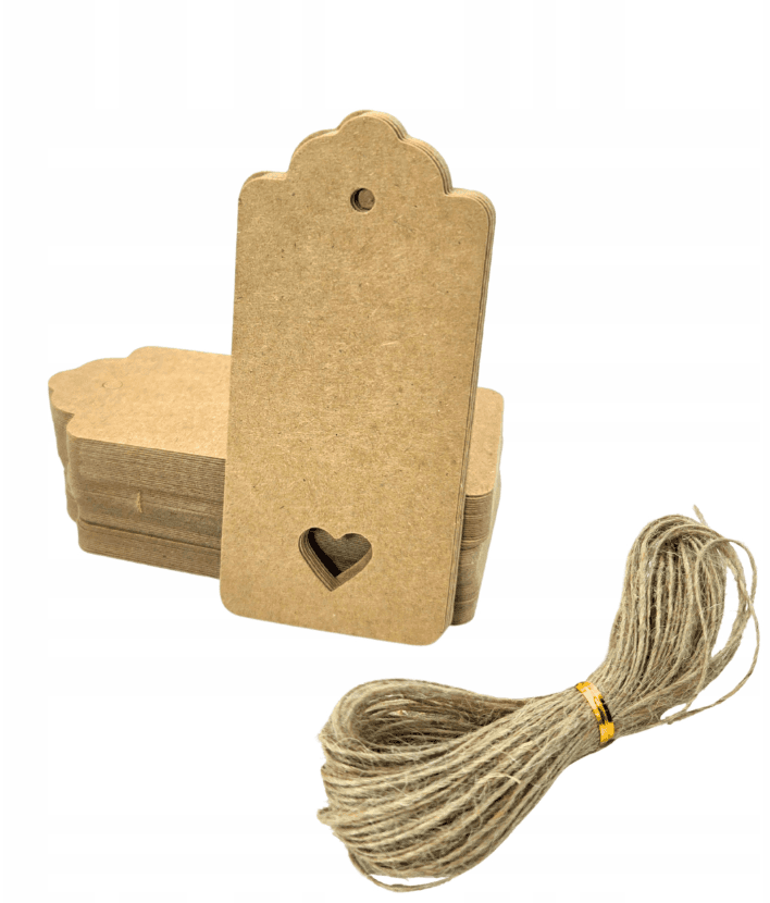 50x ZAWIESZKA ETYKIETY NATURALNE ZAWIESZKI DO PREZENTÓW 9,5x4,5cm ✅ Dodaj wyjątkowego charakteru swoim prezentom, produktom handmade i podziękowaniom dzięki eleganckim etykietom wykonanym z ekologicznego papieru kraft. ✅ To drobny detal, który sprawia ogromne wrażenie – idealny zarówno do użytku domowego, jak i profesjonalnego pakowania upominków, dekoracji czy sprzedaży rękodzieła. Opis produktu: ✅ Zestaw: 50 sztuk etykiet + naturalny sznureczek jutowy ✅ Wymiary etykiety: ok. 9,5 × 4,5 cm ✅ Kolor: naturalny brąz (kraft) ✅ Materiał: gruby papier kraft o naturalnej fakturze ✅ Otwór: gotowy do przewleczenia sznurka, wstążki lub tasiemki ✅ Styl: minimalistyczny, rustykalny, eko